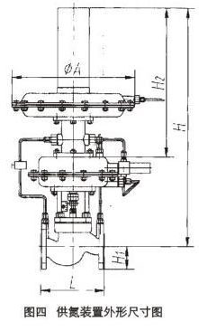 氮封裝置是由供氮裝置(見(jiàn)圖一)和泄氮裝置(見(jiàn)圖二)兩部分組成。供氮裝置由指揮器和主閥兩部分組成;泄氮裝置由反饋的壓開(kāi)型微壓調(diào)節(jié)閥組成。氮?dú)鈮毫σ话阍O(shè)為100mmH2O,通過(guò)氮封裝置精確控制。