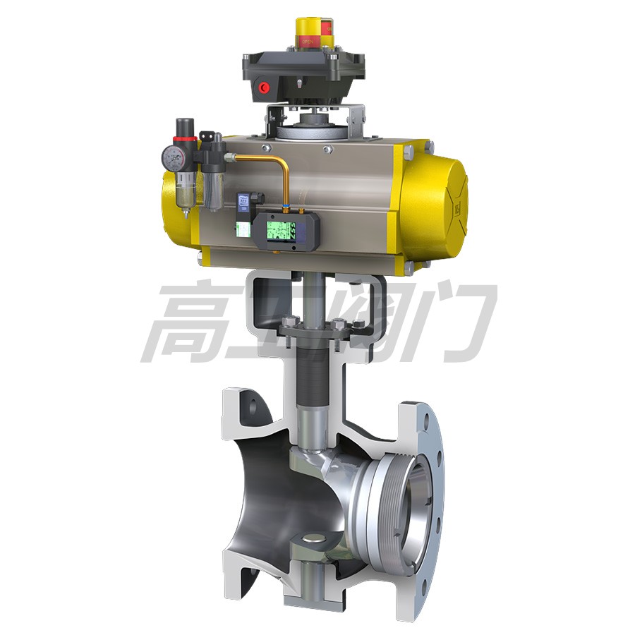 高工閥門生產(chǎn)銷售的API氣動V型調(diào)節(jié)球閥是一種直角回轉(zhuǎn)結(jié)構(gòu)的高級控制閥,它與閥門定位器配套使用,可實現(xiàn)比例調(diào)節(jié);與二位五通電磁閥及控制箱配套使用,可實現(xiàn)開關控制。氣動V型球閥閥芯設計成帶有特殊形狀的V型缺口,具有精確的截流物性和控制功能,適用于各種控制場合,結(jié)構(gòu)緊湊,體積小,可緊臥安裝等優(yōu)點。氣動V型調(diào)節(jié)球閥適用于氣體、液體、固態(tài)顆粒狀介質(zhì)的控制。由于閥芯和閥座之間是無間隙回轉(zhuǎn),所以具有很大的剪切力及自潔性能,尤其適用于含有纖維性或有微小固體顆粒的懸濁液及固態(tài)顆粒狀的控制。因此氣動V型球閥本產(chǎn)品可廣泛用于石油、化工、造紙、化纖、電力、冶金、制藥、環(huán)保等工業(yè)部門的自控系統(tǒng)。