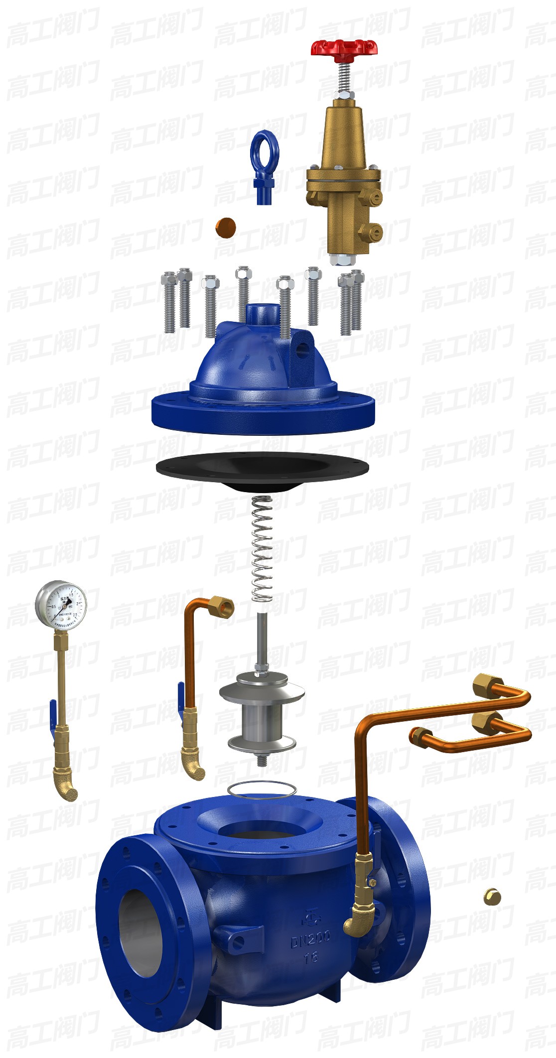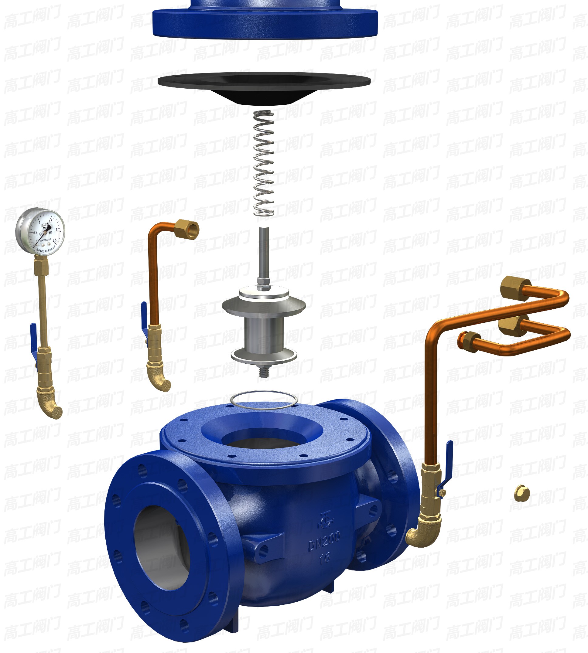 本產(chǎn)品利用水力自力控制,不需要其它裝置和能源,保養(yǎng)簡(jiǎn)便,一閥多用。
