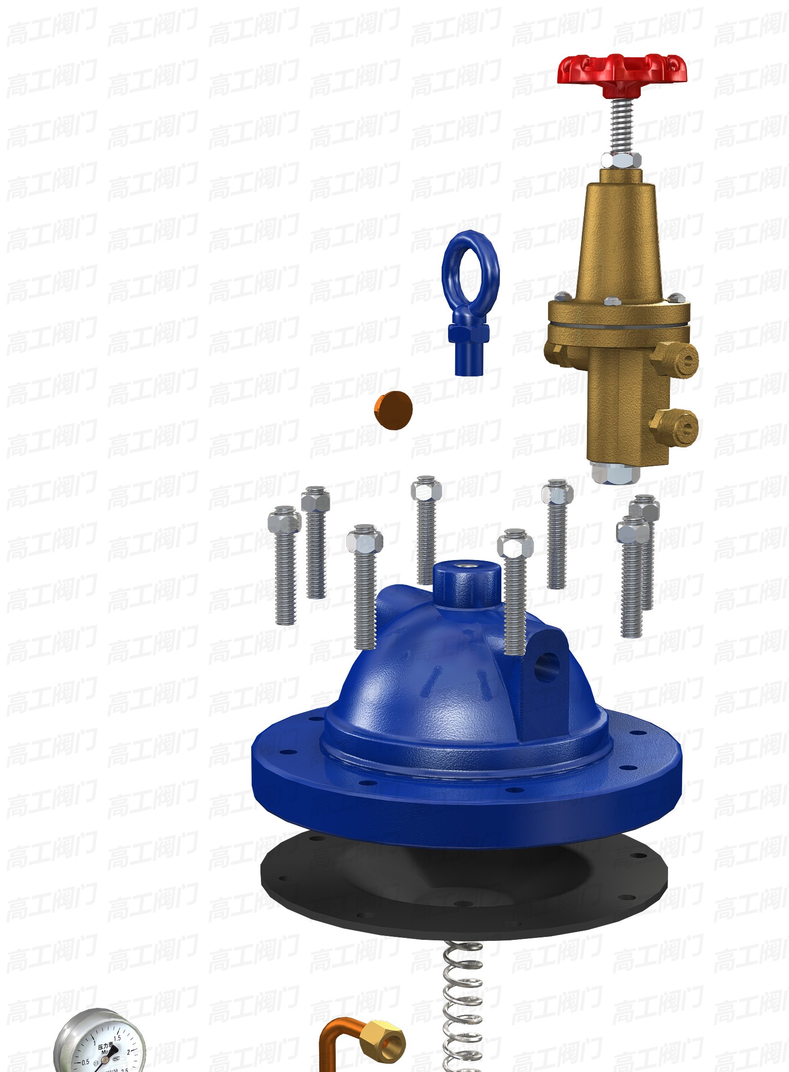 1、導(dǎo)閥2、針閥3、球閥4、主閥5、壓力表