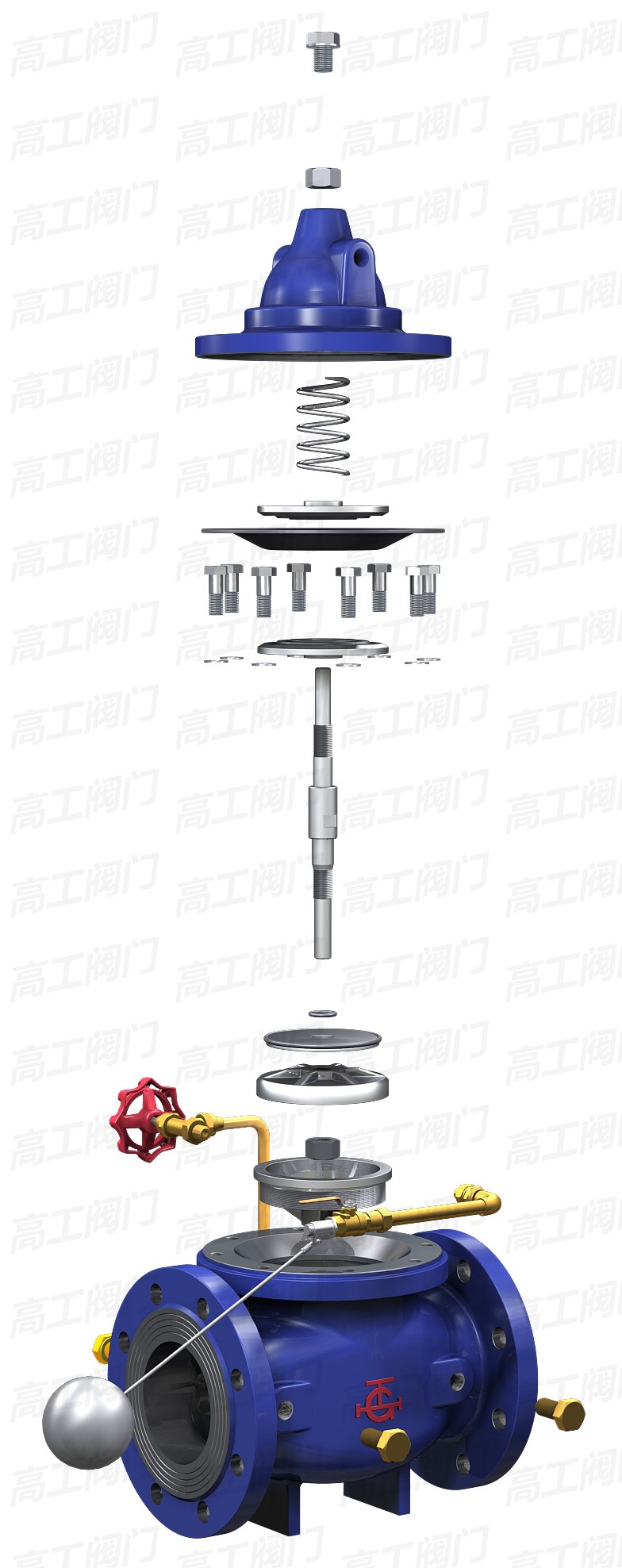 本產(chǎn)品利用水力自力控制,不需要其它裝置和能源,保養(yǎng)簡便,一閥多用。